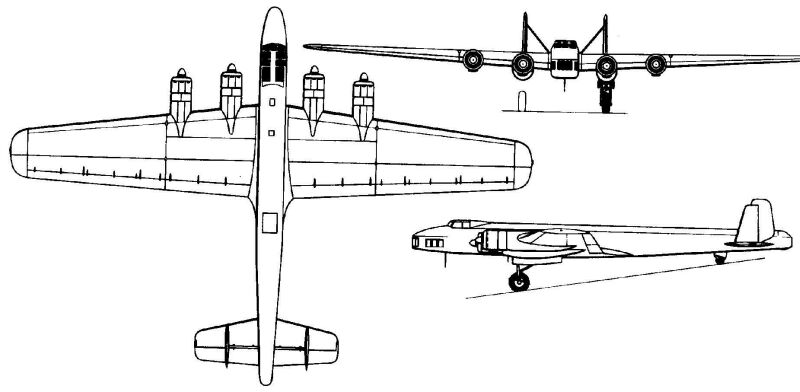 Technical Data Origin: Dornier Flugzeugbau Type: Long-range Strategic bomber Powerplant: Four 533-kW (715hp) Brano 332H-2 radial piston engines Performance: Maximum speed at sea level 315km/h (196mph); service ceiling 5600m (18,370ft); range 1600km (994 miles) Weights: Empty 11850kg (25,125lb); maximum take-off weight 18500kg (40,786lb) Dimensions: Span 35.00m (114ft 10in); length 25.45m (83ft 6in); leight 5.77m (18ft 11in); wing area 162.00m squared (1,743.81 sq ft) Armament: Two 7.92mm (0.31in) MG 15 machine guns, one each in nose and tail positions; and two 20mm cannon (one each in two-man operated ventral and dorsal turrets.) Also, up to 1600kg (3,527lb) of bombs in internal bays. |