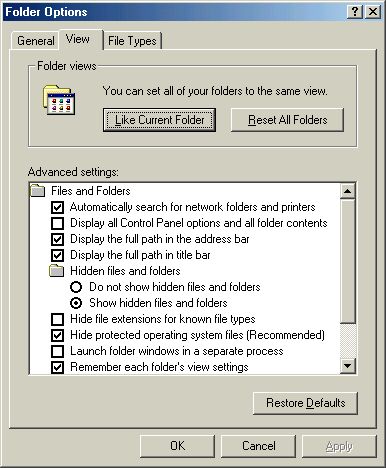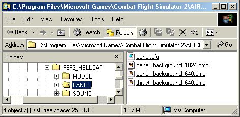 I always try to set up programs to suit the way I work. Windows is no different from any other program in this respect. Setting the My Computer/Windows Explorer folder options correctly should make it much easier to identify & manage files. Settings will vary slightly depending on which version of Windows you have. I'm using WinMe. Open the PANEL folder of a default aircraft in My Computer/Windows Explorer. Does it look something like this?